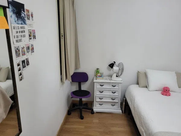 Nice quite room for girl student or young professional (female). Flat has 4 rooms for young worker girls less then 35 years old. The music auditorium is 5 min far https://www.auditori.cat/ca/ and Encants market is also very near https://www.auditori.cat/ca/