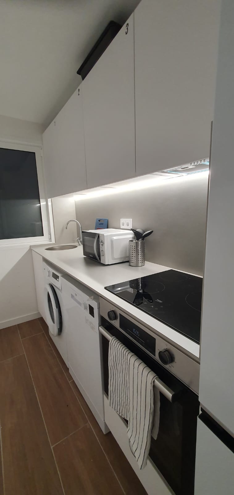 Thsi flat has 3 Rooms and 2 bath and a toilet. Landlord is not living in the flat. Tenant has to pay 100€ for the expenses.