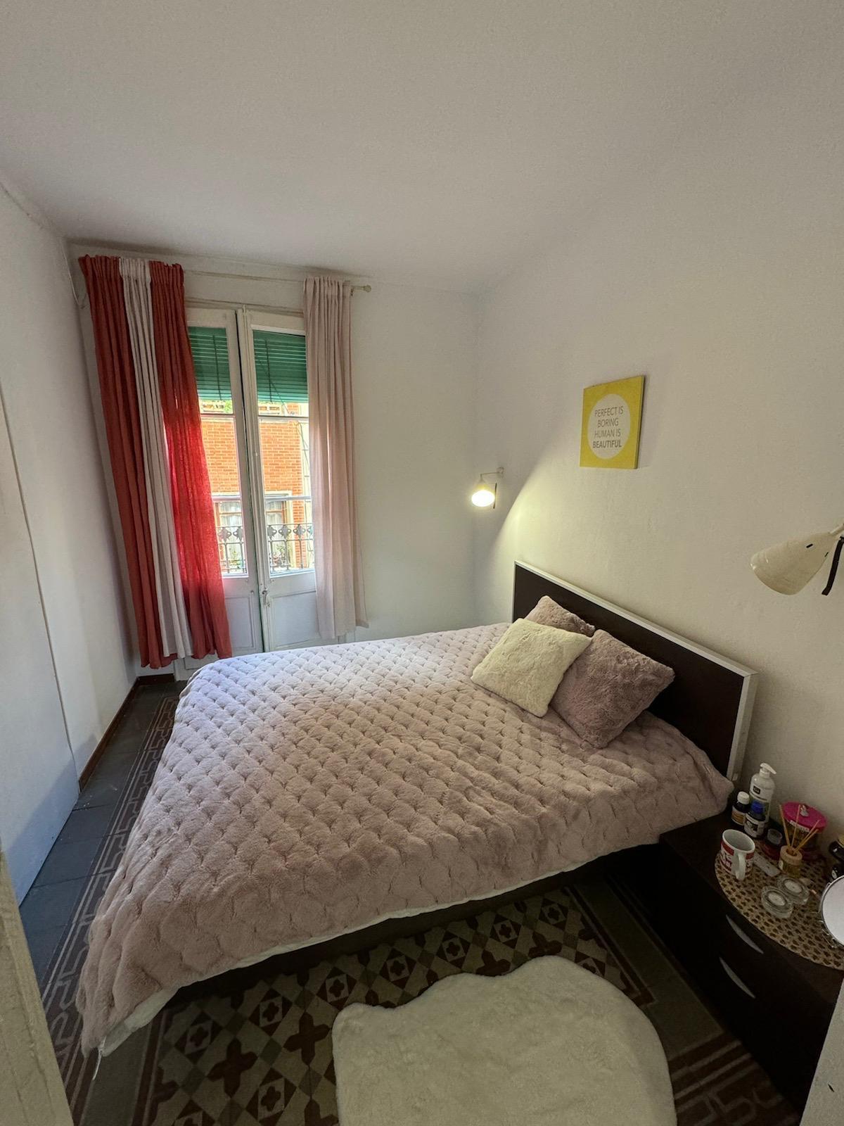 Clean, quiet and bright double room with balcony, in Gracia in a 3-room flat shared with 2 young international students(girls). We are looking for a flatmate, professional or student, quiet and responsible to share the flat with us(girl).