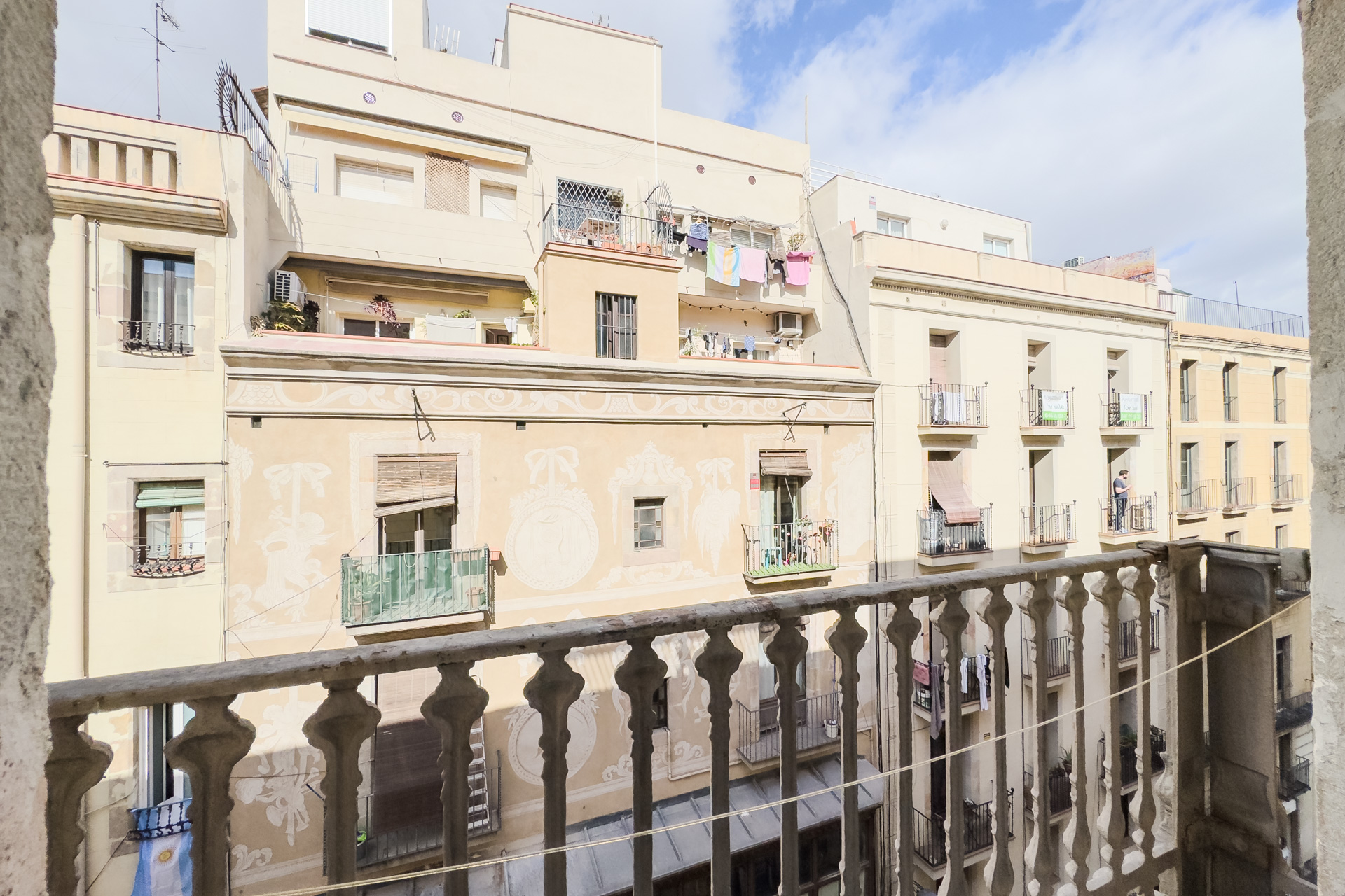 15 meter private room with bathroom in the perfect location. It is located next to Las Ramblas, next to the legendary Liceo theater, next to the Boquería market and a few minutes walk from Plaza Cataluña and Paseo de Gracia. Very close to the port and the best areas for shopping and visiting the best museums. It is located next to the Palau Güell, a family mansion designed by Gaudí The room has a lot of light as it has a balcony from where you can see the Ramblas of Barcelona, hot/cold air conditioning, large closet, private bathroom and refrigerator. The apartment has a common area with a fully equipped kitchen, a large laundry area and weekly cleaning of the common areas.e.